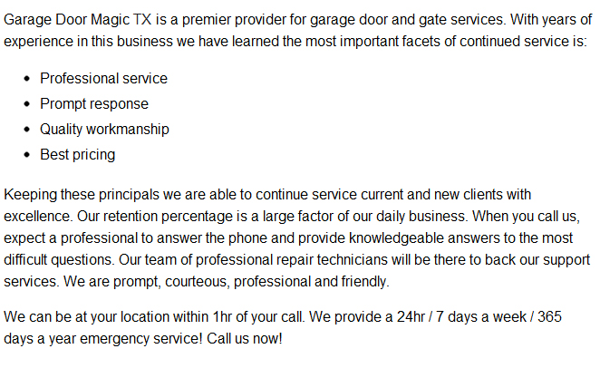About Magic TX Garage Door of the Spring Area